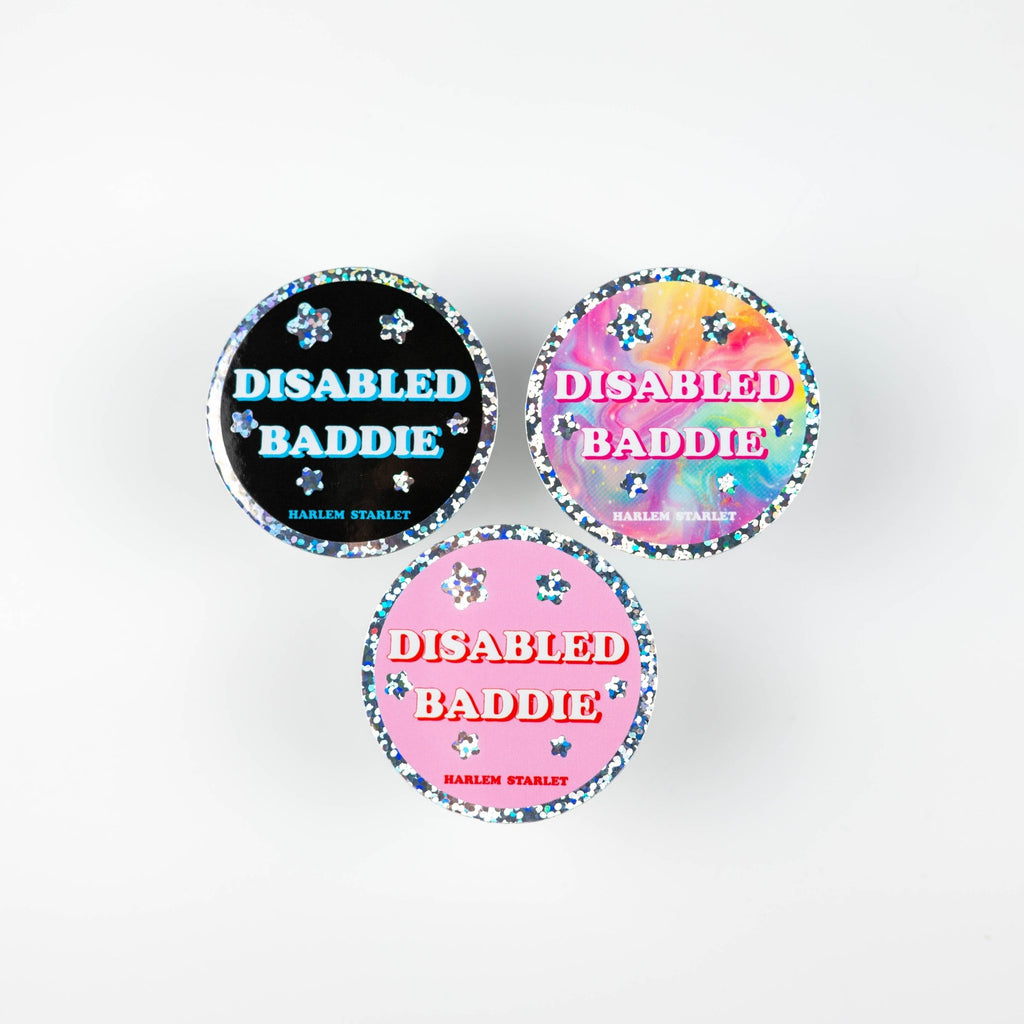 Select your preferred colour from the dropdown menu to customise your sparkly statement. Whether your vibe is bold, soft, chaotic or confident, each Disabled Baddie glitter sticker brings empowering personality and expressive styling energy to everyday accessories.