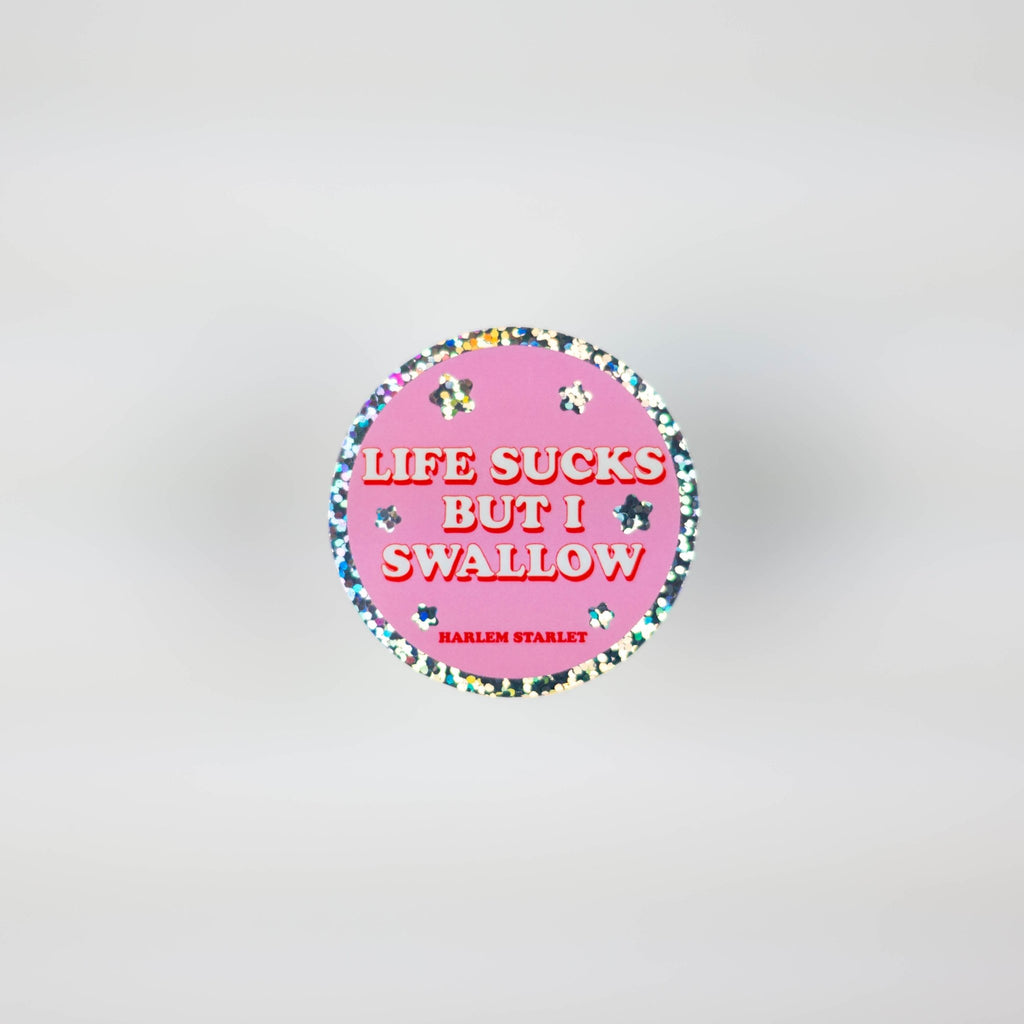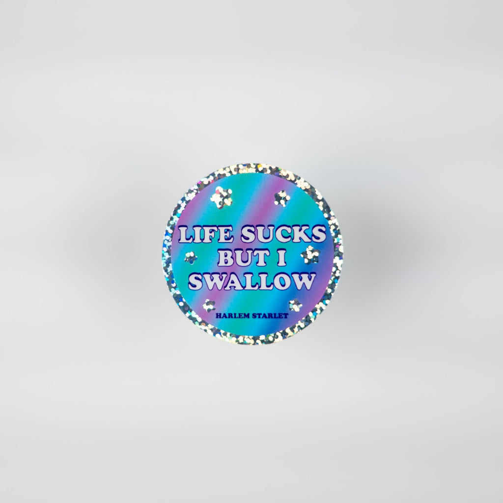 Life Sucks But I Swallow Round Holographic Glitter Sticker