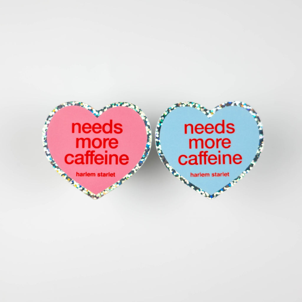 Needs More Caffeine Heart Holographic Glitter Sticker