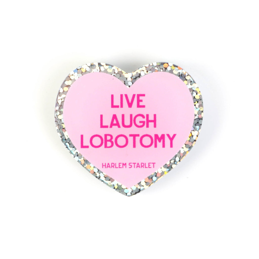 Pin - Live, Laugh, Lobotomy Glitter Heart in Pink
