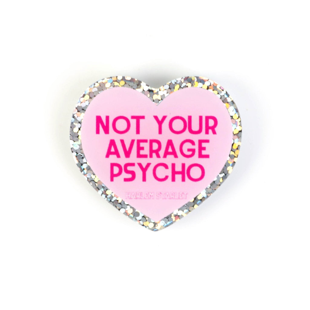 Pin - Not Your Average Psycho Glitter Heart in Pink - Harlem Starlet