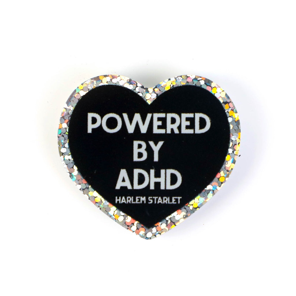 Pin - Powered by ADHD Glitter Heart in Black - Harlem Starlet