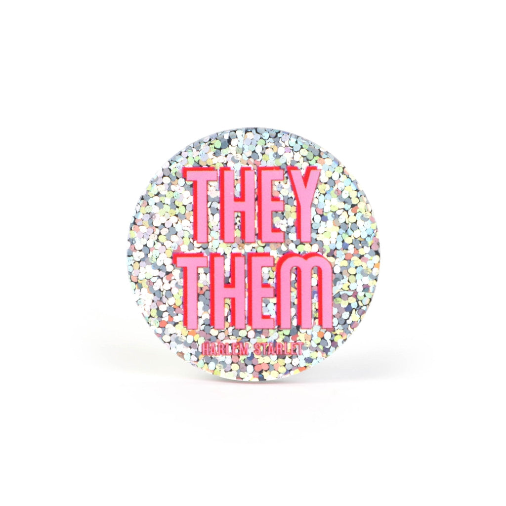 Pin - Pronoun Pin They / Them in Glitter Pink
