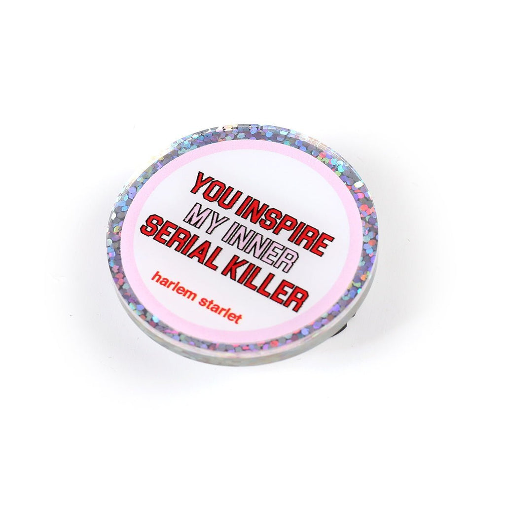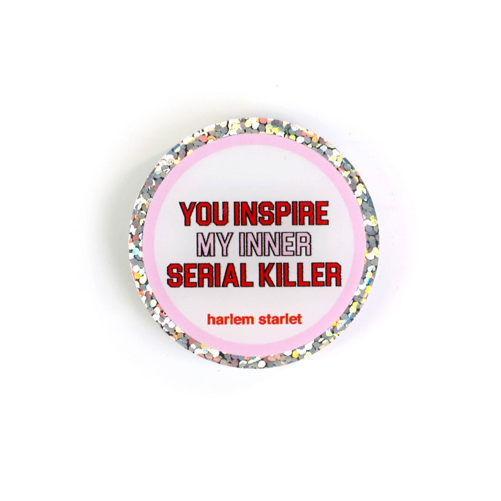 Pin - You Inspire My Inner Serial Killer Round Glitter in Pink - Harlem Starlet